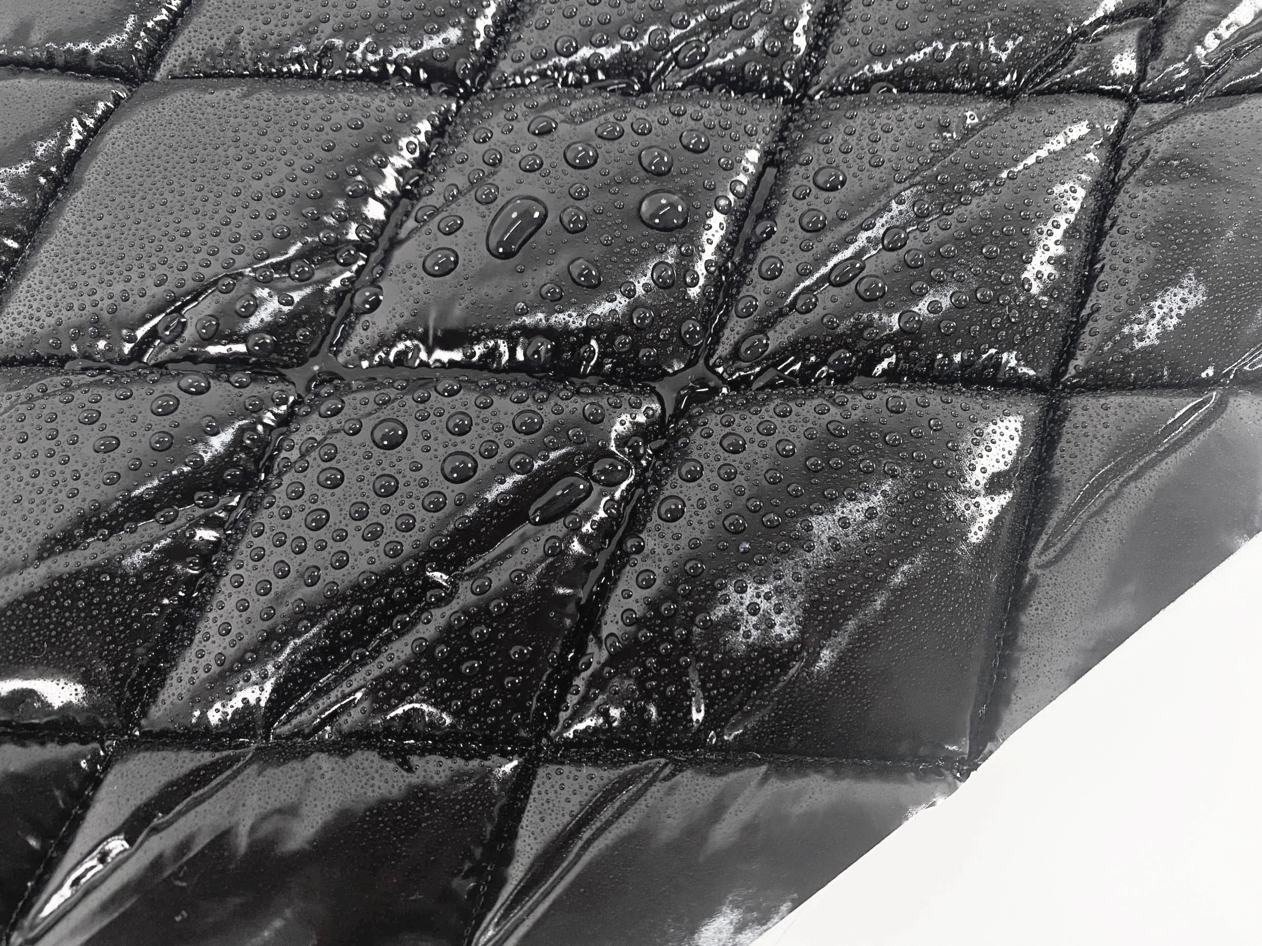 Ткань с мембраной. Мембрана – готовая тонкая пленка из полимеров (TPU, PU, PTFE, PVC, PE). Наносится с изнанки. Водонепроницаемость измеряется в мм водного столба. Если ткань имеет показатель 3к — это значит 3000 мм в/ст. Кроме мембраны с лицевой стороны — WR, DWR.