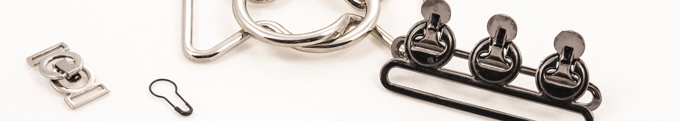 Застёжки предназначены для функционального оформления поясов, хлястиков, патов и других деталей. Изготовлены из латуни в разных гальванических покрытиях, обладают антикоррозийными свойствами.