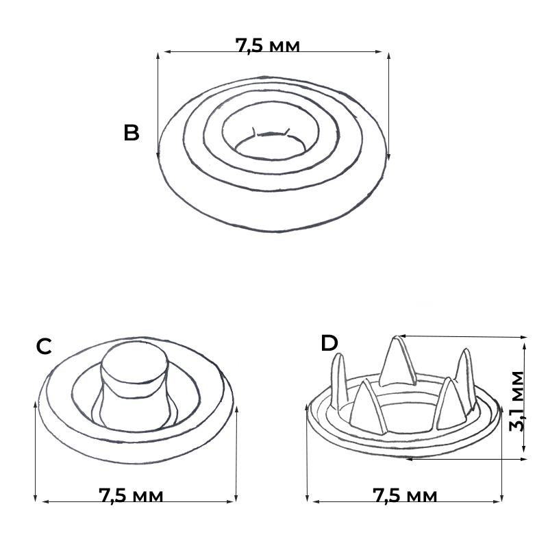 - Зубчики прочно держат кнопку и не повреждают материал.