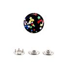 Какой дизайн Эмалевая шляпка с принтом «Звёздочка». Другие детали кнопки выполнены в серебристом цвете.