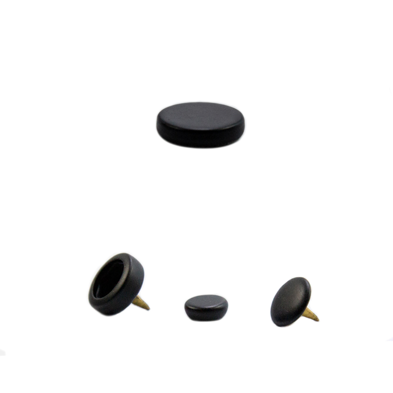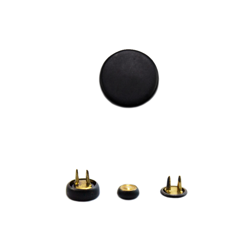 Прорезиненная латунная кнопка устойчива к царапинам, стирке, химчистке и коррозии.