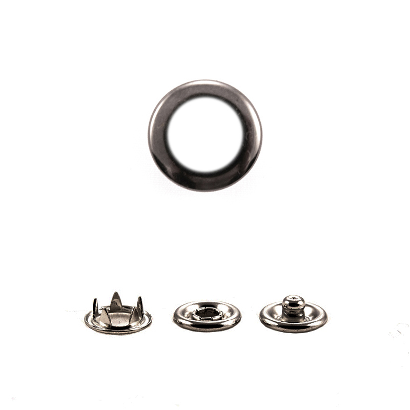 Трикотажная зубчатая кнопка из латуни со шляпкой в виде кольца Характеристика кнопки - Кнопка крепится зубчиками, которые сами прокалывают материал.