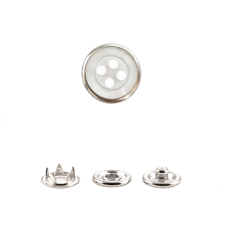 Трикотажная зубчатая латунная кнопка с пластмассовой вставкой «Пуговка» Характеристика кнопки - Кнопка крепится зубчиками, которые сами прокалывают материал.