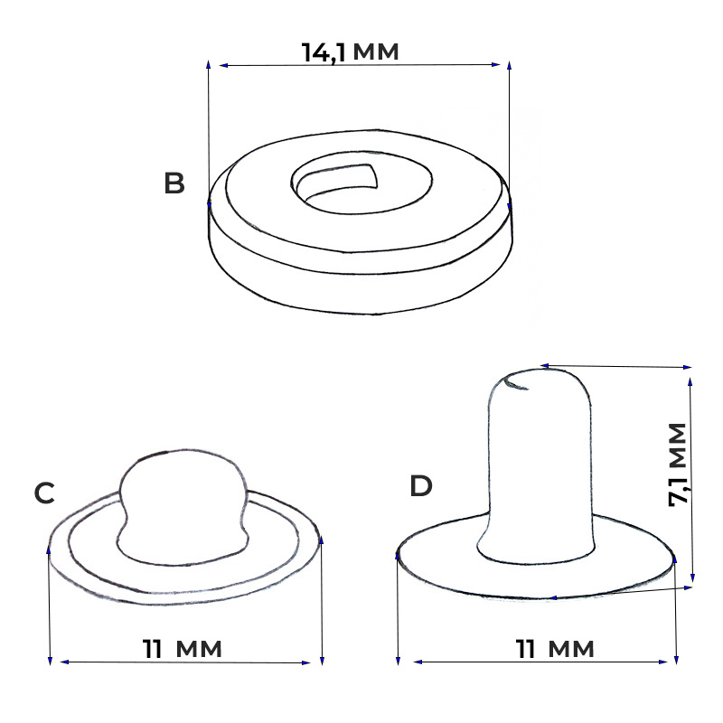 - Контакт # 484 является несколько усиленным по сравнению с универсальным # 486 (d -12 мм), благодаря более крупным деталям. Особенно подходит для изделий из плотных материалов.