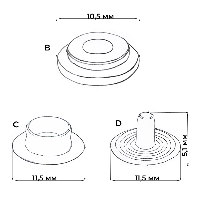 Кнопки с различными размерами шляпок контакта # 406 имеют одинаковые размеры нижних деталей.